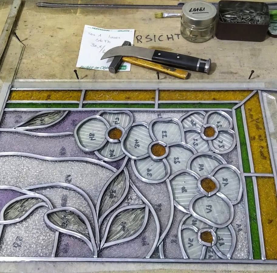 Das aktuelle Angebot reicht von individuellen Einrahmungen über Glasmöbel, Reparaturverglasungen und Bleiverglasungen bis hin zu Kunstwerken und Kleinserien aus eigener Herstellung. Auch im Dialog mit Künstler:innen oder Kolleg:innen aus anderen Glasereien entstehen immer wieder spannende Kooperationen.