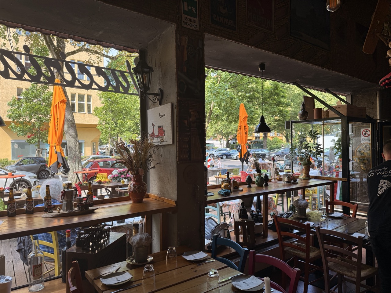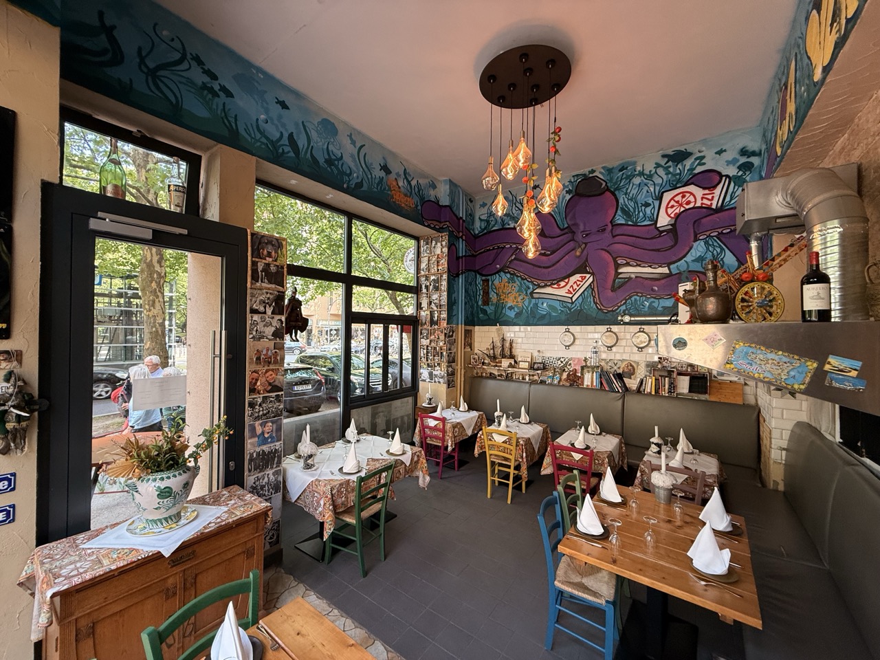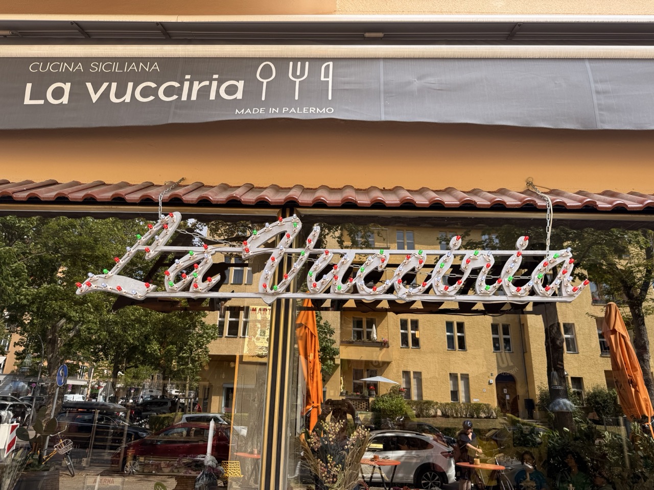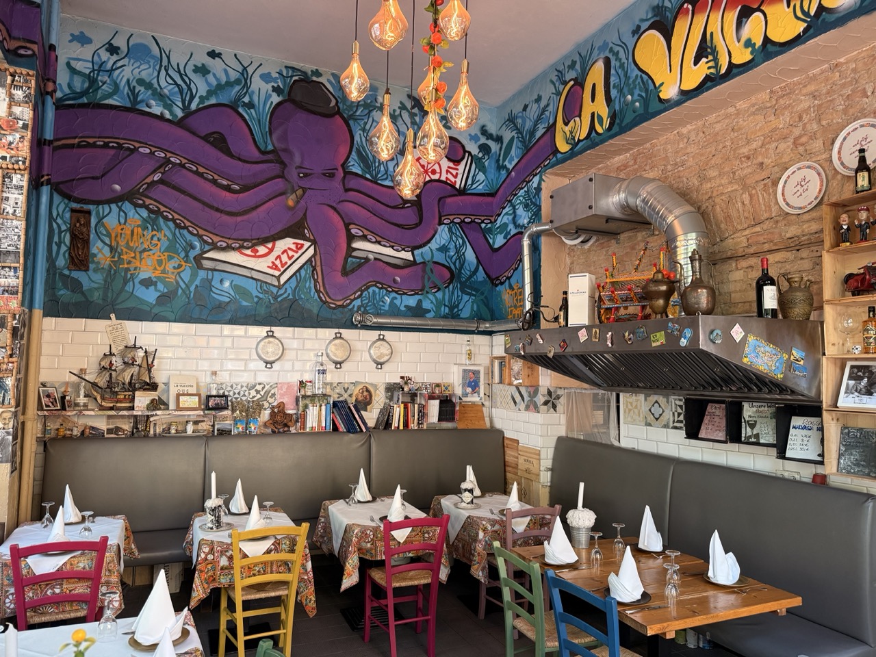 Der Name „La Vucciria“ ist eine Hommage an den berühmten Markt in Palermo, der früher ein Fleischmarkt „La Boucherie“ war und sich über die Jahre zu einem lebendigen Zentrum für Streetfood, Kultur und Begegnung entwickelt hat. Genau dieses Lebensgefühl hat Maurizio eingefangen und nach Berlin gebracht. Das merkt man sofort: Farbenfrohe Stoffe, markttypische Details, eine Einrichtung mit viel Liebe zum Detail – hier fühlt man sich wie auf einer sizilianischen Piazza.